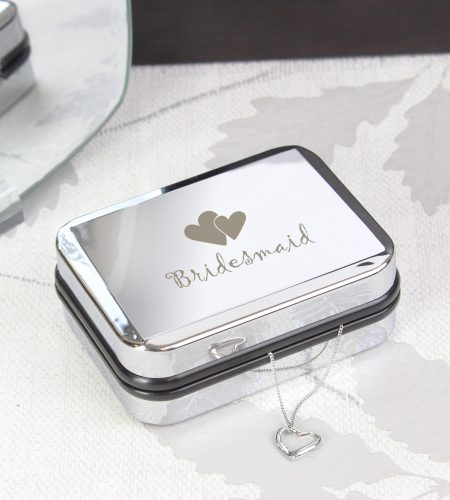 The sterling silver heart necklace comes in a presentation box featuring a heart design and the wording ‘Bridesmaid’ as standard text.