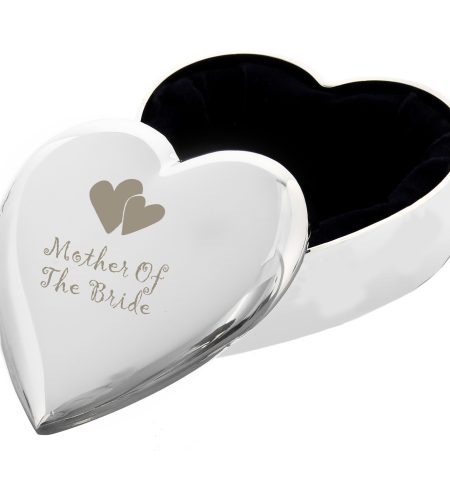 This heart trinket features a heart motif and the wording ‘Mother of the Bride’ as standard text.